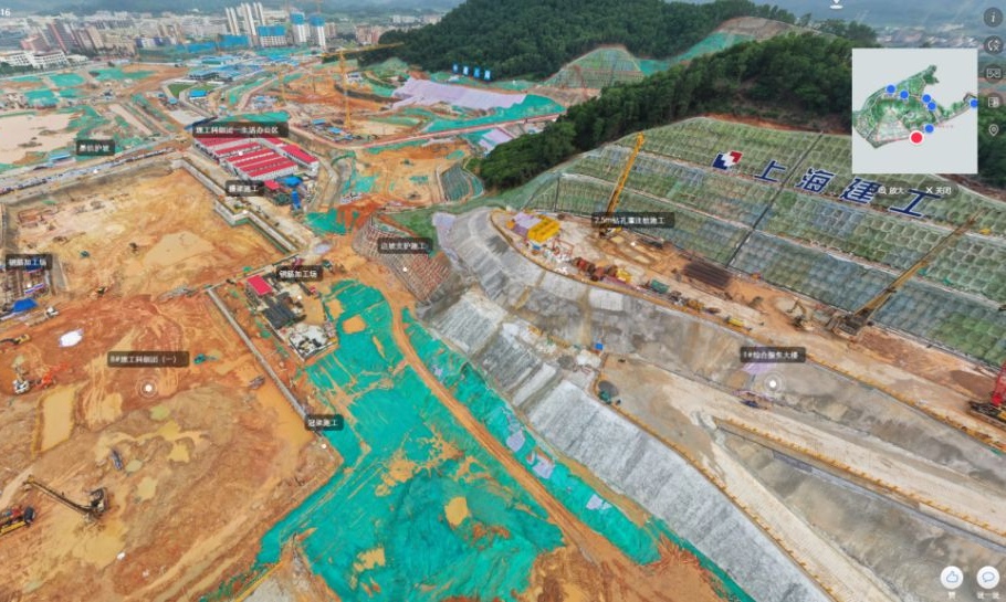 为国内某超大型企业打造企业级工程智能建造及控制管理平台,实现企业项目集群管控、可视分析和智慧决策。主要实施内容包括:打造工程孪生底座(基于自研工程孪生引擎)和进行项目业务系统开发,其中业务系统包括:项目施工协同管理(施工进度、质量、安全、文档),现场人员管理(人员考勤、人员定位、健康监测),设备及模架管理钢平台监测、塔吊监测、现场环境监测,现场超高层混凝土泵送模拟,地下工程隐蔽工程管理等。
